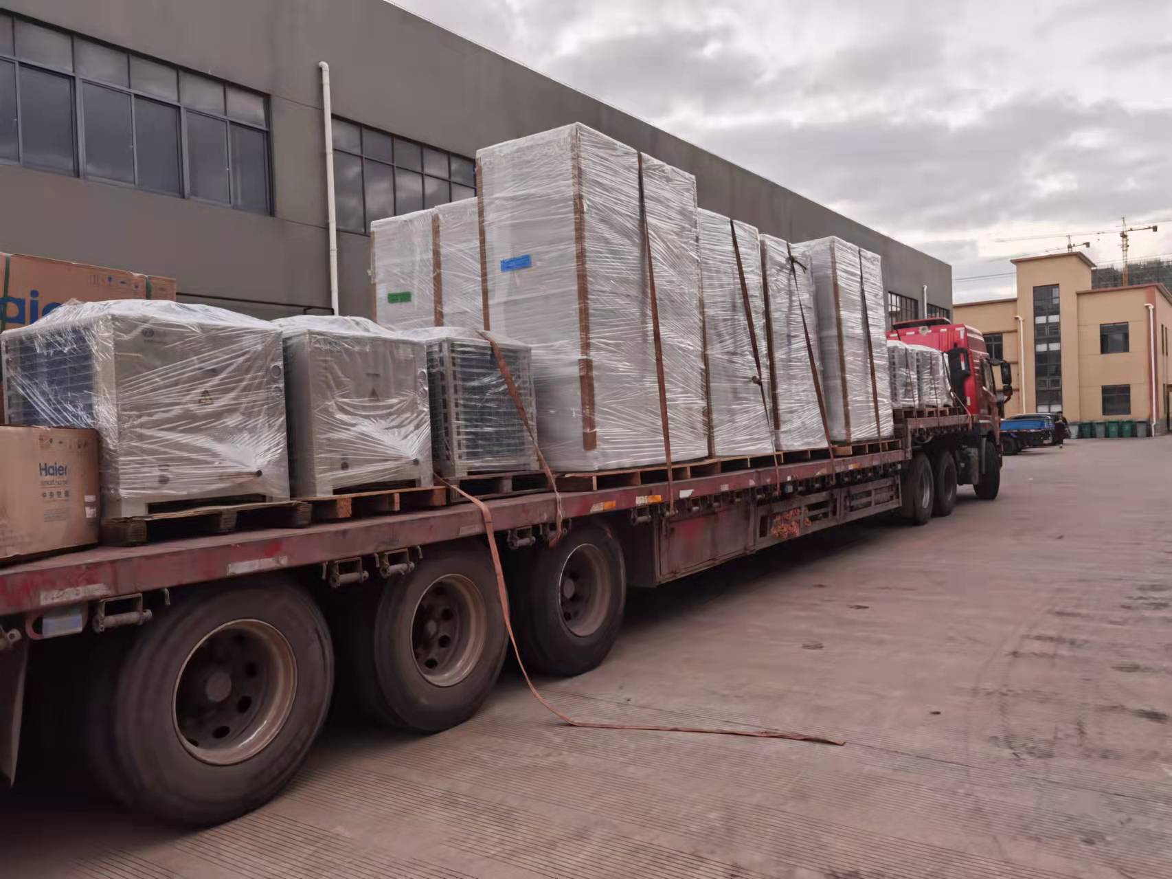 春節臨,夏季的臨時迎來了制冷空調最忙碌的旺季。在上海眾有的廠區,記者看到,幾輛大貨車車在等待裝運,數名裝卸工人正在緊張搬運貨物。一片繁忙景象,員工們正在全力裝運,寓于著2022年里上海眾有定戰而全勝!