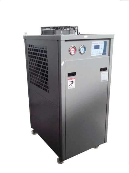 一副模具就是一個換熱器,熱量由融熔的塑料傳入模具,再由模具傳入不斷循環(huán)的冷卻介質(zhì)——冰水中,只有很小一部分進入空氣和注塑機的壓模板。眾所周知,塑料成型的周期,相當(dāng)大的部分用于冷卻,有時可占到塑料成型周期80%以上,因此將冷卻時間控制到最小是絕對必要的。那么,注塑機如何選用合適的工業(yè)冷水機,從上面我們即可知道,它與成型材料的比熱容、熔膠時的溫度,重量以及制品脫模時的溫度有關(guān)。