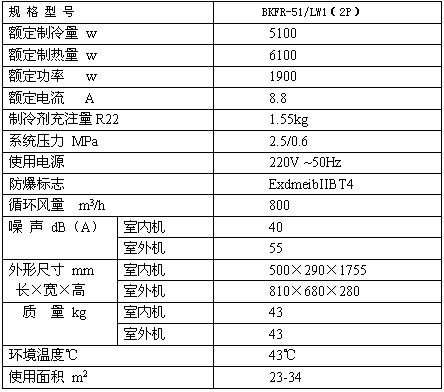 BKFR-51/LW1防爆空調技術參數