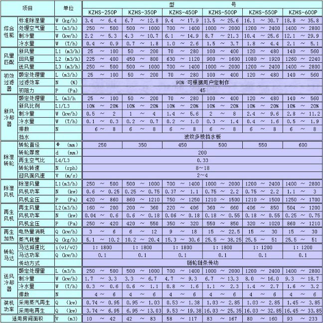 KZHS-玻璃合片室型轉輪除濕機組技術性能