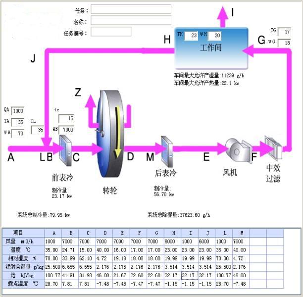 ★ 首先利用冷凍去濕原理,把室外高溫高濕度空氣降溫去濕后供給轉輪除濕機進行吸附除濕。達到高溫低濕空氣后供給送風(后)冷卻器冷卻達到除濕冷卻目的。本機組可進行客戶要求進行調節溫度。